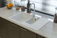 Кварцевый агломерат – ещё одно название кварцевого искусственного камня. Его успешно используют при создании столешниц и подоконников. Искусственный камень больше, чем какой-либо другой материал, подходит для оформления столешницы в детской. Его отличает ряд преимуществ: